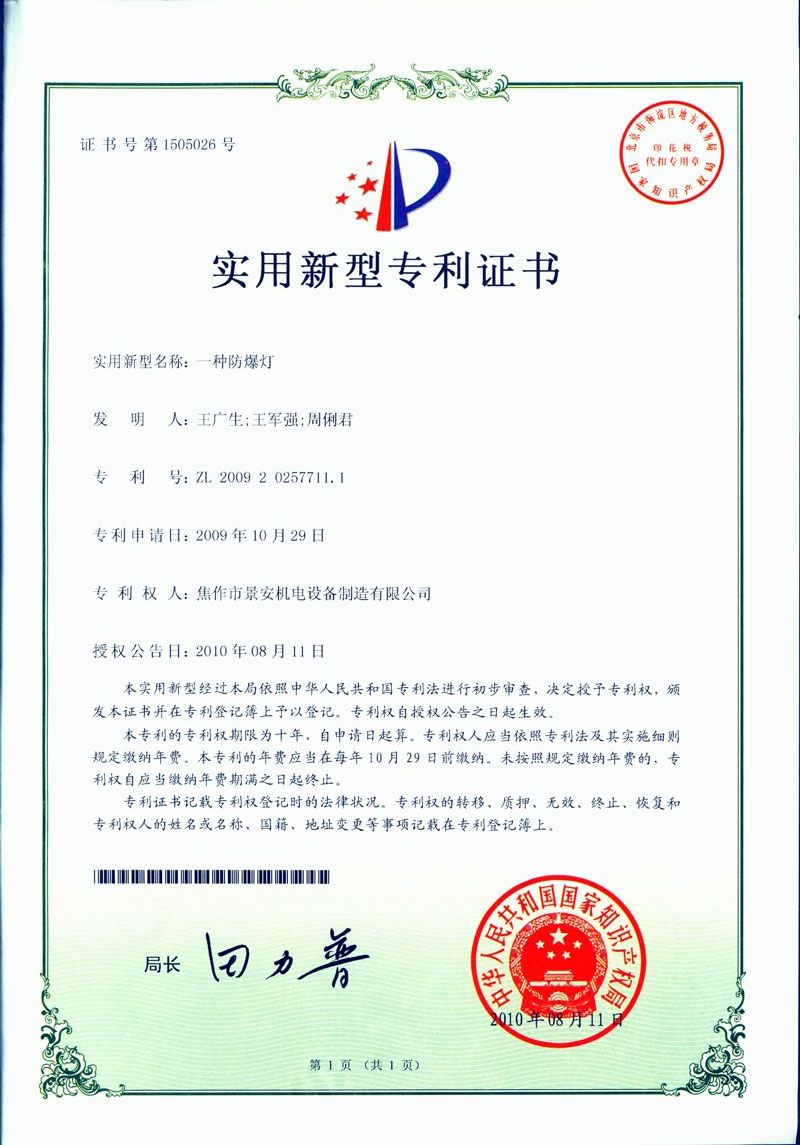 焦作景安公司始終堅持“以科技為先導,以市場為導向”的發(fā)展戰(zhàn)略,不斷進行新產(chǎn)品的研制和開發(fā),在國家“六五”到“九五”期間,承擔和參與了國家多項科技攻關(guān)項目,產(chǎn)品的技術(shù)和質(zhì)量一直處于全國同行業(yè)領(lǐng)先位置。并被中國電器工業(yè)協(xié)會評定為“質(zhì)量可信產(chǎn)品”。特別是在礦用防爆燈領(lǐng)域,礦用隔爆型半導體(LED)照明燈具,2008年列入國家火炬計劃,獲2009年河南省工業(yè)和信息化廳的科技成果二等獎,并擁有多項國家專利。 |